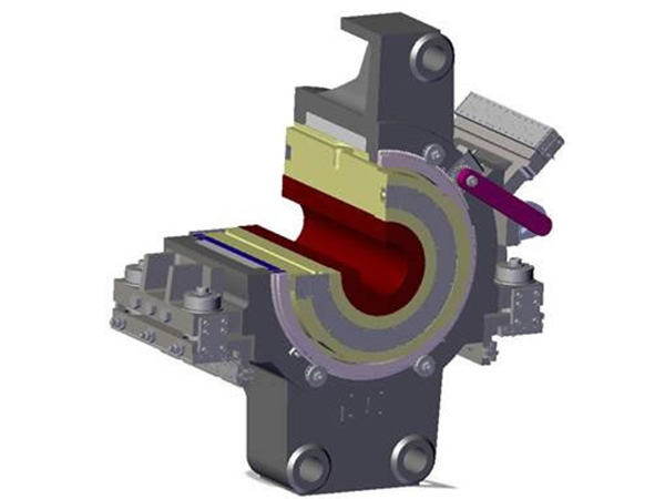 前上料系统:上料中心与挤压筒中心一致,实现无摩擦装料;坯锭对称墩粗, 改善排气操作,避免产生气爆坯,同时提高了挤压制品质量。